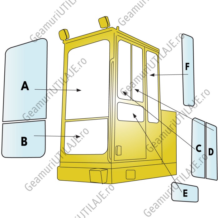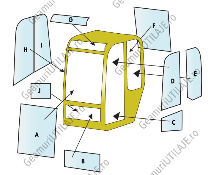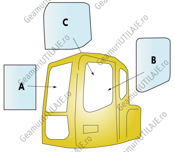 Geam utilaj Case / Parbriz utilaj Case 61-90B -120B - 220 - 350B 1770C - 688 - 888 - 1088